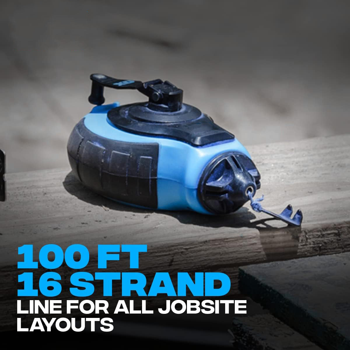 This chalk line tool comes with a 100-foot thick line, specially designed for building projects, patio construction, framing, roofing, and other industrial applications. The hook design enhances grip, ensuring stable fixing on various surfaces. With a 6:1 gear ratio, it allows for fast and efficient rewind, 6 times faster than single-gear alternatives. The metal handle is durable and withstands harsh environments and drop impacts. The top-loading design makes it easy to refill with chalk, compatible with all brands of chalk, providing a premium user experience.