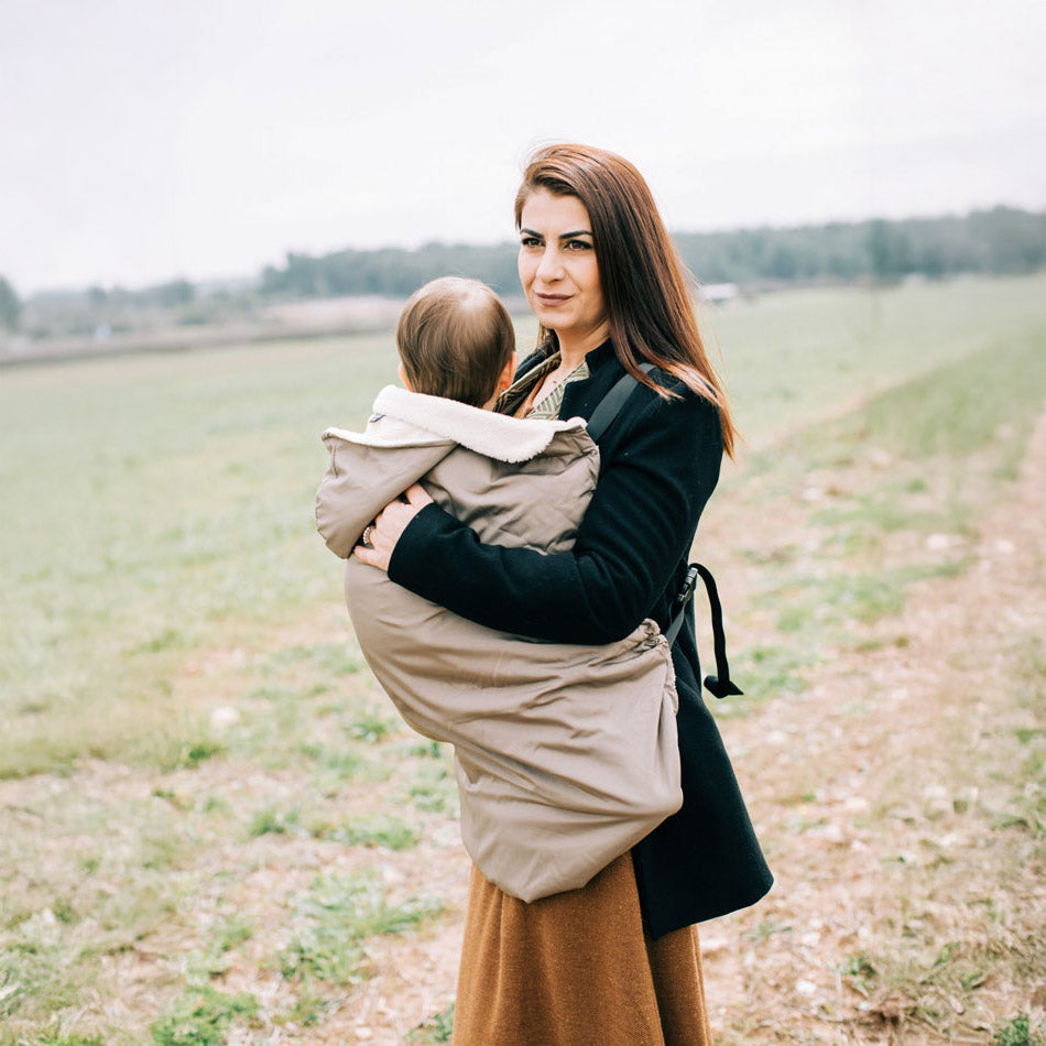 This sling cover keeps your baby warm and dry during cold or rainy weather while using a baby carrier. Designed to fit all types of wraps, buckle carriers, and meh dai carriers, it works for both front and back carry positions, offering reliable weather protection from newborn to toddler stages.